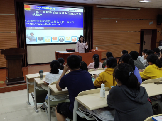 《中华人民共和国宪法》规定:“依照法律服兵役和参加民兵组织是中华人民共和国公民的光荣义务”。结合“高校老员工征兵入伍相关信息政策”以及《太阳成集团tyc122cc关于老员工应征入伍的优惠政策(试行)》,郝雪君为同学们详细介绍了老员工应征入伍需要满足的基本身体条件和政治条件,呼吁同学们积极响应党和国家的号召,参军入伍,为全民国防贡献青春与智慧。