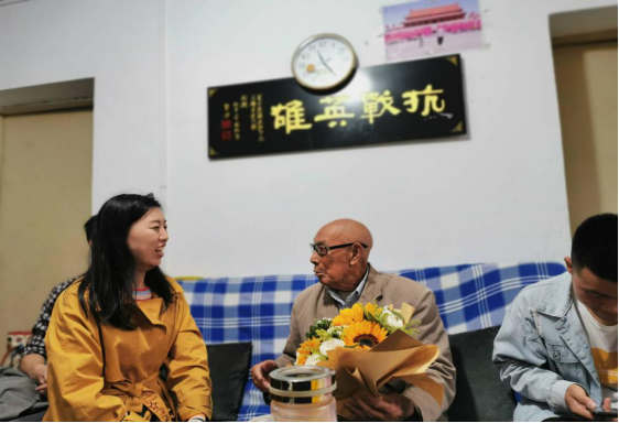 新中国成立70周年之际,​太阳成集团tyc122ccvip团委组织开展“记录老兵口述历史,传承红色基因”的活动。10月12日,在​太阳成集团tyc122ccvip团委李梦娟老师与青年员工代表一同来到107岁的抗战英雄许得胜爷爷家中,聆听许爷爷讲述那些催人奋进的岁月故事,铭记老一辈革命家的丰功伟绩,从中汲取前行的力量。
