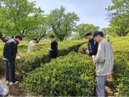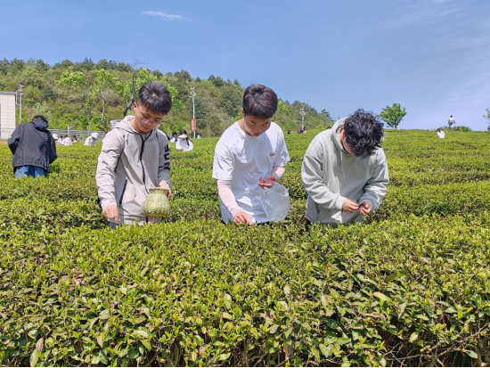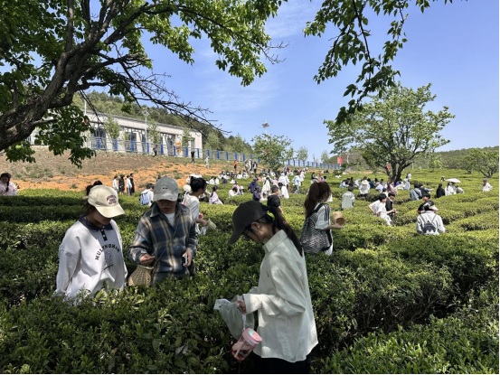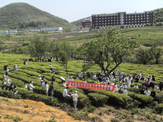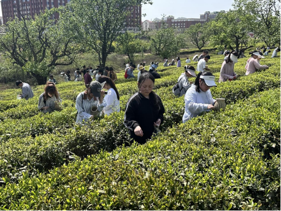 4月15日,太阳成集团tyc122ccvip组织各年级约300余名同学参加公司“茶艺秀”劳动教育活动,现场采摘约26斤茶叶。