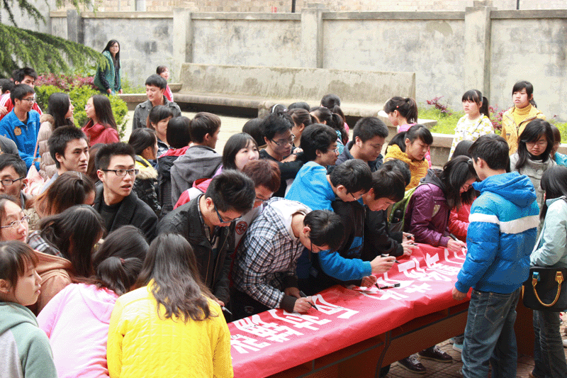 公司举行“厉行勤俭节约,反对铺张浪费”系列活动启动仪式及签名活动 根据公司文件《关于开展“光盘行动”的通知》(党办发〔2013〕8号)精神,公司党政领导高度重视此项工作,召开了专题会议,制定了工作方案。以“厉行勤俭节约,反对铺张浪费”为目标,通过开展小型多样的主题活动,倡美德、树新风,提高师生思想觉悟,形成“节约光荣、浪费可耻”的优良风尚。 2013年4月12日,太阳成集团tyc122ccvip在校本部和花溪校区同时开展了“厉行勤俭节约,反对铺张浪费”系列活动的启动仪式及签名活动。出席该活动的领导有宣传部部长潘丽芬、学工处处长赵平、院团委书记付萍以及公司党政班子,全院共有师生近500余人参加签名活动。 活动现场,师生们纷纷表示以实际行动从我做起,从身边做起,节约粮食,节约能源。既要做“光盘”行动的践行者、示范者更要做“光盘行动”的推动者。