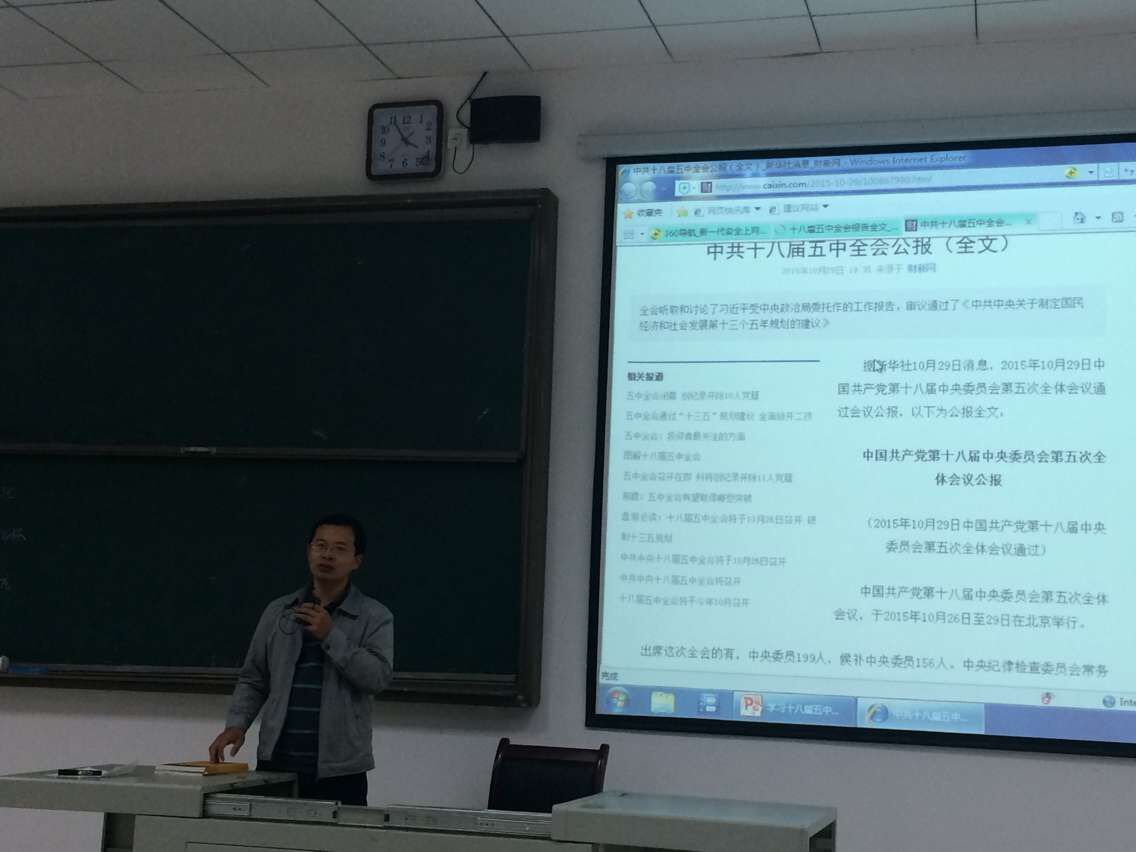 ,太阳成集团tyc122ccvip员工第一党支部在新校区4306教室集中组织学习党的十八届五中全会精神,参加本次学习会议的人员有太阳成集团tyc122ccvip员工科科长、员工第一党支部书记刘亮和员工支部全体党员同志。