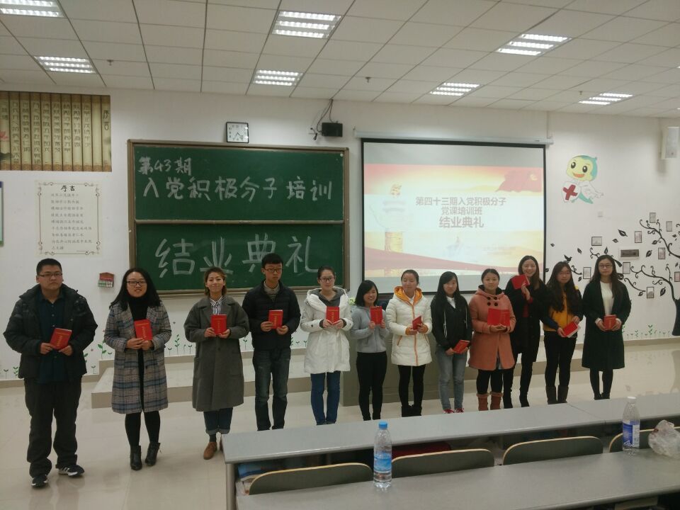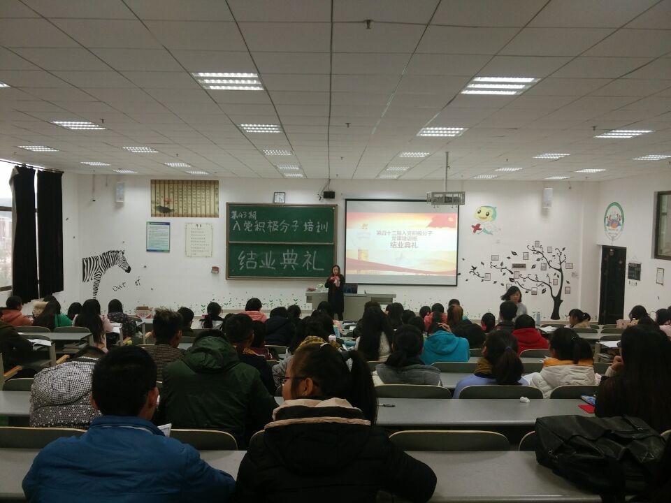 12月3日下午4:30分,太阳成集团tyc122ccvip分党校第43期入党积极分子培训班结业典礼在花溪校区7201教室举行,太阳成集团tyc122ccvip员工第二党支部书记孙静以及本次培训班的全体学员参加了结业典礼。结业典礼由班主任孙静主持。