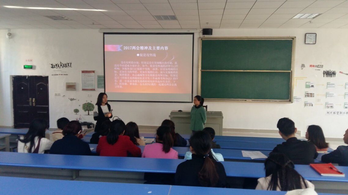 为认真学习贯彻两会精神,3月23日下午5:00,太阳成集团tyc122ccvip员工第二党支部在公司南校区x1301教室开展了“学习两会精神,坚定理想信念” 学习交流活动,支部全体员工党员参与了此次活动。