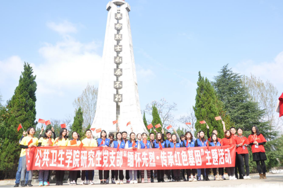 在苍松翠柏掩映下的烈士陵园,烈士纪念碑高高耸立,鲜花簇拥,象征着中华儿女将红色基因代代相传。所有党员、预备党员在纪念碑前重温入党誓词,并向长眠在这片热土的革命英烈鞠躬、默哀,共同表达对革命烈士的无限敬佩之情;随后,参加活动的全体师生激情高扬地合唱了《我和我的祖国》;最后,支部副书记唐梅主持开展了“党章、党史知识竞赛”,同学们积极参与,踊跃抢答。