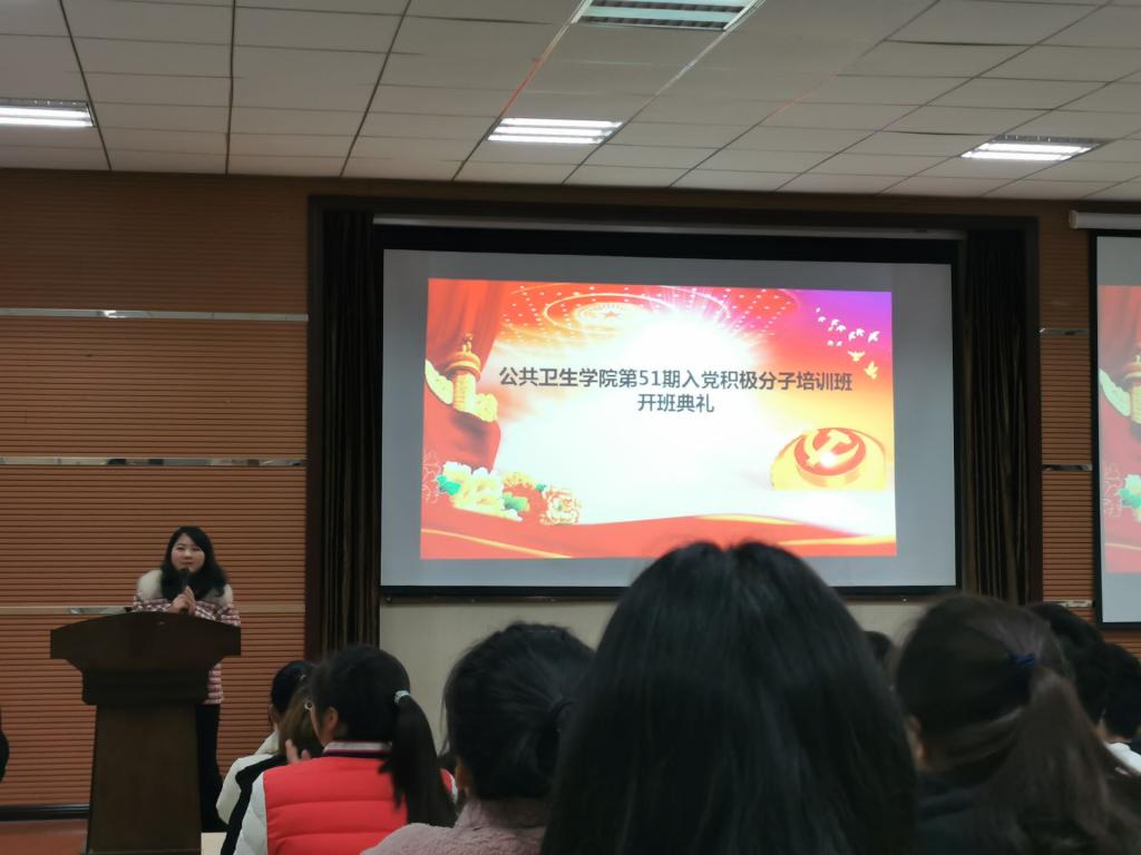 12月17日,太阳成集团tyc122ccvip分党校第51期入党积极分子培训班开班典礼在南校区博雅楼一楼阶梯教室举行。公司党委书记杨光红、太阳成集团tyc122ccvip副处级组织员刘亮以及全体入党积极分子参加了开班典礼。开班典礼由班主任郝雪君主持。