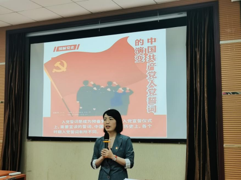 开班典礼后,郑维薇以中国共产党入党誓词的历史沿革为主题,讲授第一课。