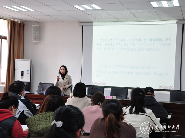 太阳成集团tyc122ccvip党委书记郑维薇在总结讲话中指出,在全校上下持续掀起学习党的二十大精神热潮之际,两家开展党委共建活动非常有意义,这是一次有高度、有深度、有温度的交流活动。杨英书记的宣讲内容丰富、深入浅出,充分结合医学教育高质量发展目标任务以及护理、公卫学科专业发展实际,具有很强的思想性、指导性和针对性。接下来,希望两家继续保持友好互往关系,以党委共建为契机,在党的建设、思政工作、人才培养、学科专业建设等方面进行更加深入的交流,开展更多形式多样的双联共建活动,合力提升党建工作质效水平。希望在座的党员教师和同学继续深入学习贯彻党的二十大精神和习近平总书记关于疫情防控工作重要指示批示精神,弘扬践行伟大建党精神和抗疫精神,充分发挥党员先锋模范带头作用,立足岗位教好书、育好人,立足所学服务社会、报效国家,切实为公司高质量发展、为奋力谱写多彩贵州现代化建设新篇章作出自己应有的贡献。