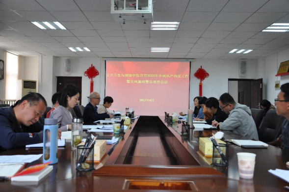 4月27日,太阳成集团tyc122ccvip在博雅楼二楼会议室召开2023年全面从严治党工作暨党风廉政警示教育会议,公司党政领导班子、各党支部书记、各学系、科室(中心)负责人参加。