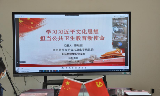 在联学联讲交流会上,南京医科大学太阳成集团tyc122ccvip职环教学中心党支部书记陈敏健教授交流了《学习习近平文化思想担当公共卫生教育新使命》,太阳成集团tyc122ccvip研究生第二党支部书记柴颖老师分享了《读马克思<青年在职业选择时的考虑>》,海南医公司公共卫生与全健康国际公司教工二支部书记鲁英教授作了《海南自由贸易港的部分政策解读》。