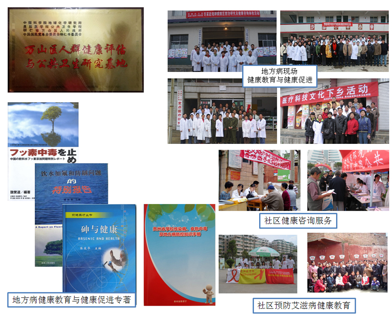 多年来,公司教师积极开展地方病防治、饮食与健康、心理健康等健康教育与健康促进活动。深入我省地方病病区为居民开展健康体检和健康宣教活动,并总结经验主编出版《中国饮水加氟问题特别报告》(日文版)、《中国氟研究文选》、《砷与健康》等;无偿为食品企业提供咨询、为各类人群提供心理咨询,赴凯里、桐梓就“凯里网吧爆炸事件”、“桐梓6.17员工中毒事件”等开展心理疏导工作;到贵阳市各社区为老年人提供无偿健康咨询及服务;到息烽等地开展下基层扶贫义诊活动;对毕节、安顺和黔东南地区的部分村镇和中小学中开展系列健康教育活动;与中科院地化所、万山区人民政府共建了“万山区人群健康评估与公共卫生研究基地”;开展贵阳市大中专生、贵阳市云岩区妇幼保健站职员《性健康教育》和“食品安全卫生”健康教育等;受贵州省教育厅委托完成面向全省各级教育行政部门和各级各类公司配发的《贵州省公司传染病、食物中毒及地方病防控知识手册》编写;为《贵阳晚报》、《贵州日报》等多家报纸撰写健康教育文稿,就高考员工加强营养合理膳食及贵州地区生活健康提出指导性建议等。上述工作的开展,为我省公众健康教育与促进起到了积极推动作用,受到政府、企事业单位的广泛好评和肯定。