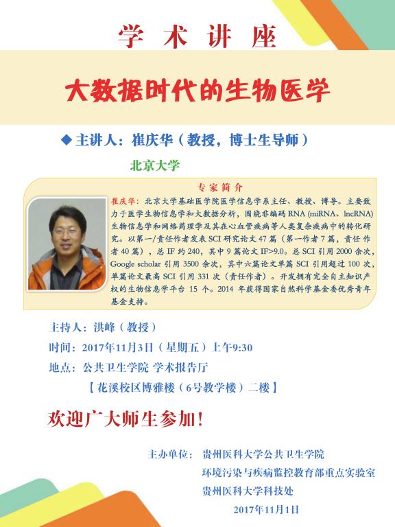 讲座通知(2017年11月3日):北京大学 崔庆华 教授